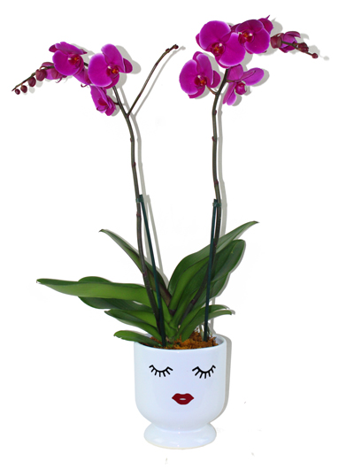 Orquídea Phalaenopsis Morada Doble en Base de Cerámica