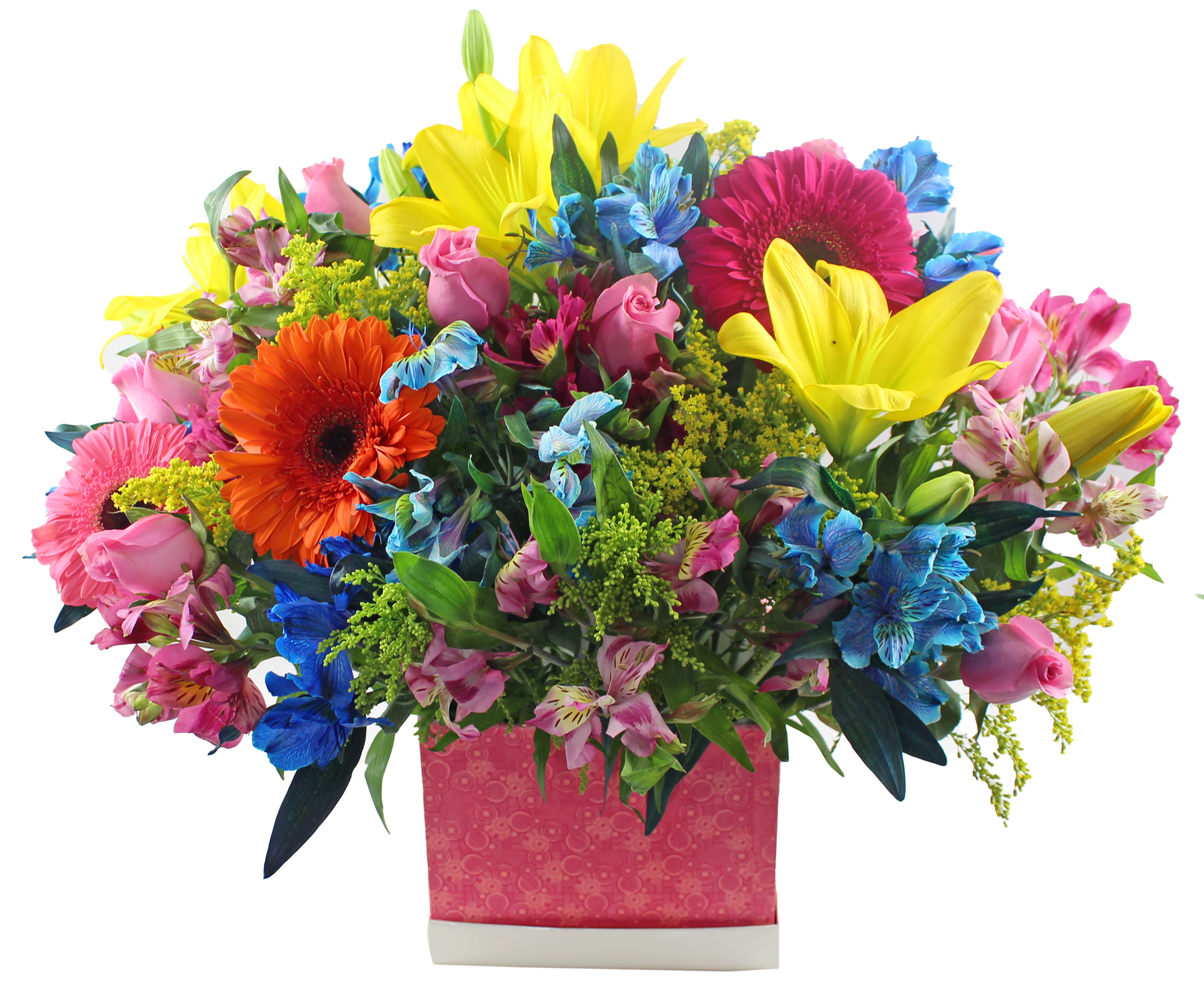 Llena cualquier ocasión de color y felicidad con este espectacular arreglo floral multicolor elaborado con flores frescas cuidadosamente seleccionadas. Su diseño amplio y vibrante lo convierte en el regalo ideal para cumpleaños, felicitaciones, agradecimientos o para sorprender sin motivo especial. Disponible con entrega el mismo día en CDMX y área metropolitana, presentado con gran detalle para causar una impresión inolvidable.
