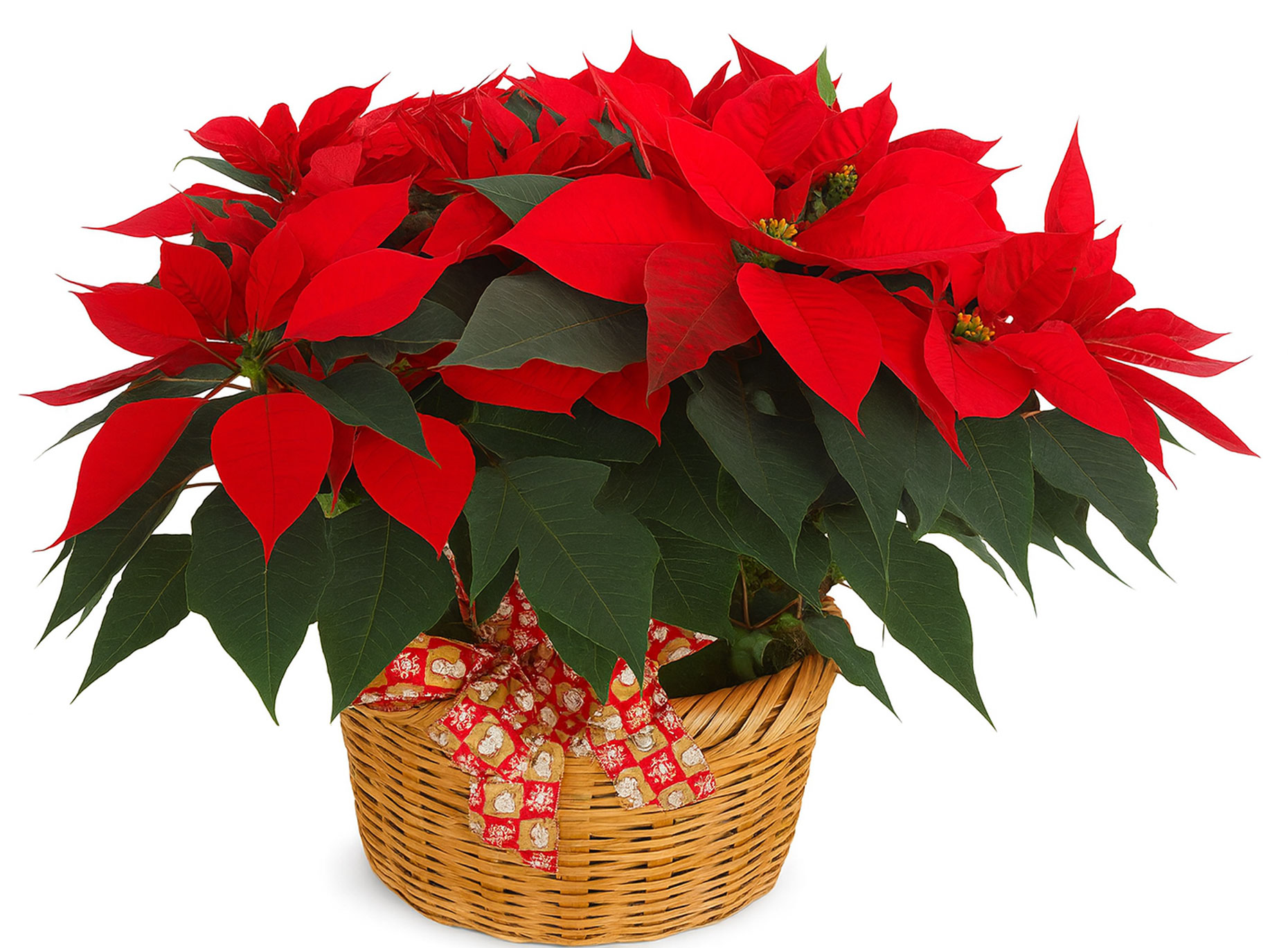 Linda canasta de mimbre adornada con un precioso moño, con noche buenas de la mas alta calidad para acompañar nuestros hogares u oficinas en época navideña.