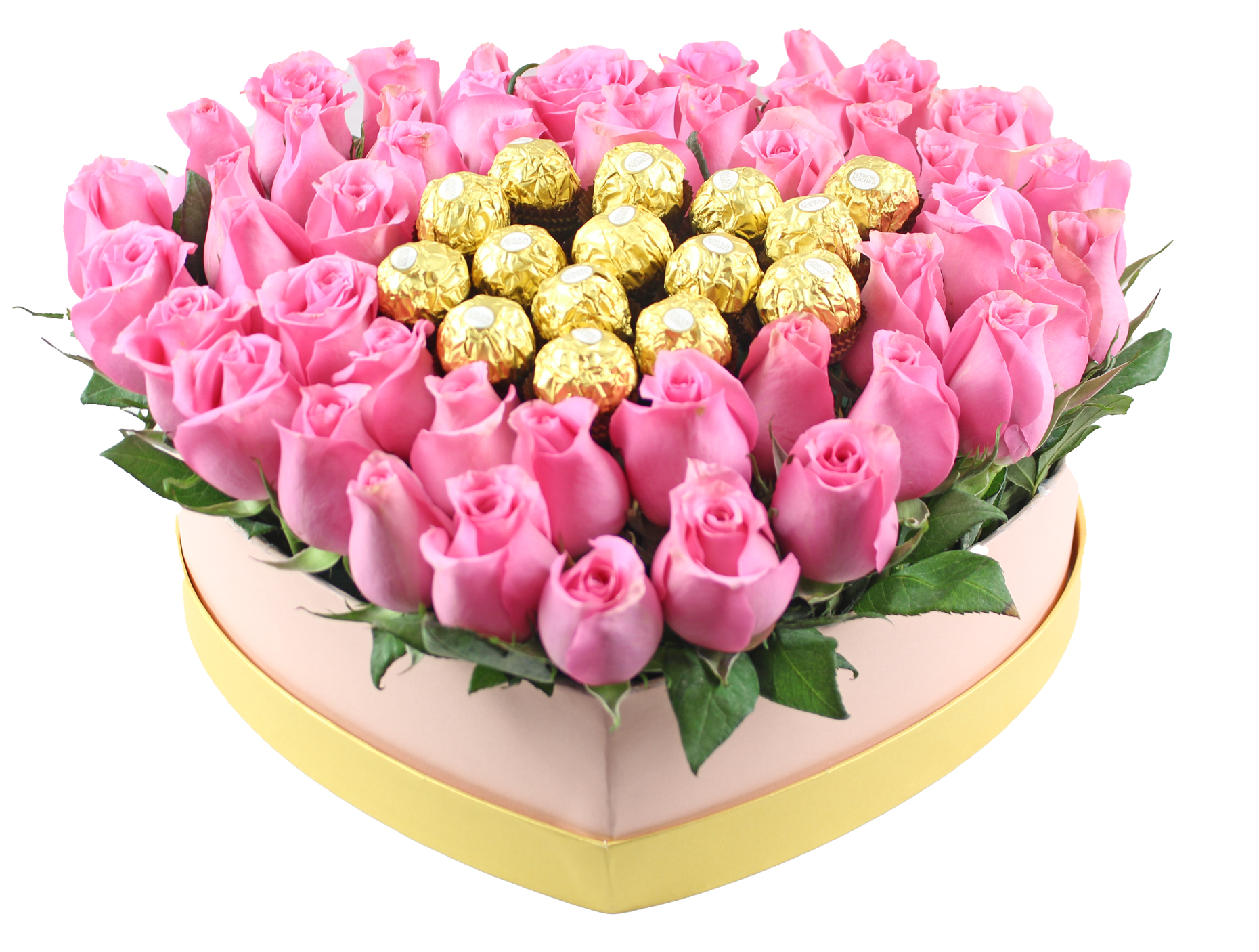 Sorprende con un detalle inolvidable: un elegante arreglo en forma de corazón elaborado con finas rosas rosas cuidadosamente acomodadas, que rodean un delicioso centro de chocolates ferrero. Este diseño combina romanticismo, dulzura y presentación de lujo, convirtiéndolo en el regalo perfecto para aniversario, cumpleaños, declaración de amor, agradecimiento o cualquier ocasión especial.